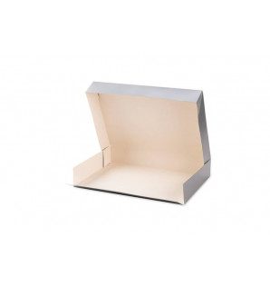 Grey cardboard catering box, suitable for all our Atlas 1/1 trays. The front opening and the hinged lid make it easy to display serving trays filled with sweet or savoury petits fours. It's perfect for transporting to your receptions or for delivering a brunch. Made entirely from cardboard, the catering box is fully recyclable. It is made in France.