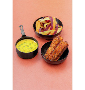 Practical and refined, this 22 cl matte black stainless steel bowl is a durable and versatile option for all your presentations. Reusable and recyclable, it offers optimum resistance and withstands oven baking as well as freezing.