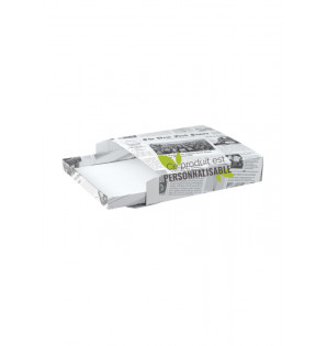Multi-purpose square box in newspaper-style printed cardboard. Comprising a tray to slide inside (h30 mm) and a case, it's ideal for delivering a brunch, a meal or mignardises for a shared event. It is compatible with all our ranges of tableware and trays.