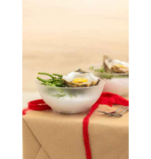 A bowl with rounded, clean lines and a frosted appearance, for serving fruit salads or small vegetables. It closes with a CC108 flat lid for easy stacking or delivery.