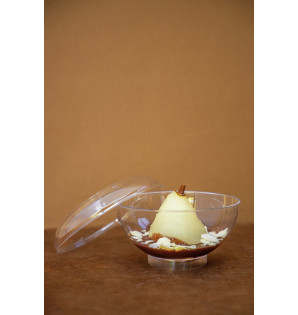 Transparent 60 cl bowl for presenting individual salads or cut-up fruit. It closes with a