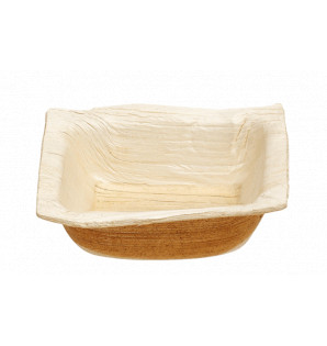 Square mini dish made from palm leaf sheath. This 100% natural material, with no treatment or additives, is waterproof and heat-resistant: oven and microwave safe. Ideal for adding a natural, exotic touch to your buffets, we offer a range of palm leaves: BP120 : round bowl 15cl BP200 : round bowl 40cl RP120 : rectangular ramekin 15cl RP60 : round ramekin 3cl
