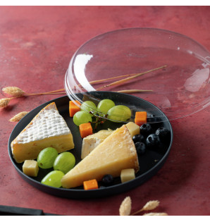 Transparent dome lid, suitable for Ø200 mm Santo plates. Attached to the plates, it allows safe transport of all types of culinary creations. With a height of 4.5 cm, food is protected and perfectly visible. This lid, made from recycled materials, is recyclable. Compatible Santo plates are : - In grey PP/talc AS200G, black AS200N, white AS200B - In white bagasse ASB200