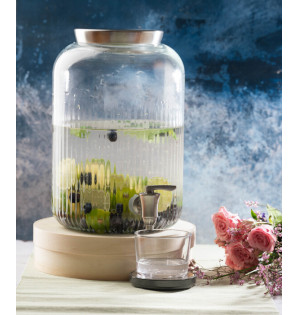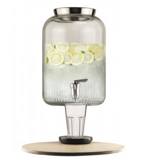 Large 7-litre glass drinking fountain with high-quality stainless steel lid and tap. A stainless steel and black melamine drip-stop SGN95 can be placed under the tap, to ensure impeccable, hygienic service. Easy to wash and reusable.
