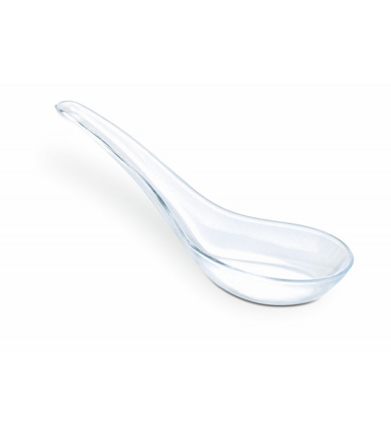 Transparent PS tasting spoon. This hollow spoon is ideal for creamy appetisers such as dips, espumas and tartars. Washable and reusable.