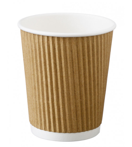 Micro-fluted kraft cardboard cup, with double-wall insulation to keep your drinks hotter for longer, but also to protect your hands from the heat! This high-quality range is recyclable. Also available in 10 cl GK12.