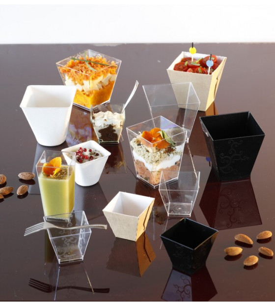 Kova is an iconic flared verrine, available in a range of materials and sizes to create a harmonious atmosphere at a buffet or reception.