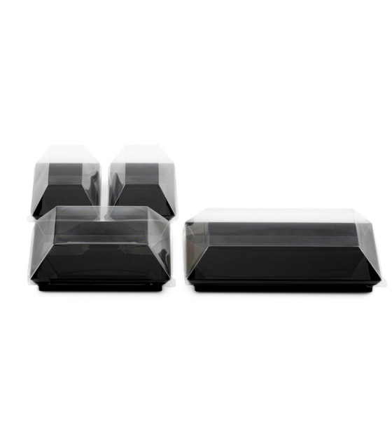 Cubik tableware set in blak PS with RPET lids (h30 mm), consisting of: