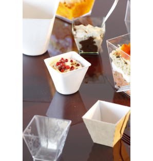 Kova is an iconic flared verrine, available in a range of materials and sizes to create a harmonious atmosphere at a buffet or reception.