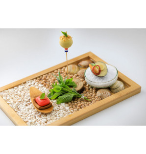 Wide, flat bamboo presentation spoon. This high-quality spoon will add a natural touch to your buffets and receptions. Also available in black MB10N.