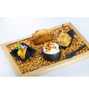 Wide, flat bamboo presentation spoon. This high-quality spoon will add a natural touch to your buffets and receptions. Also available in natural bamboo MB10