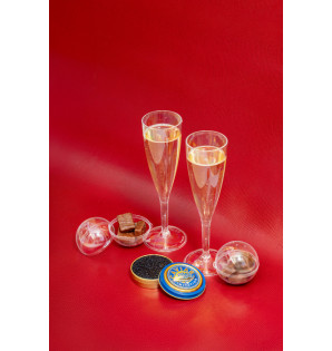 The gold aluminium base is complemented by a gold and blue clip-on lid.