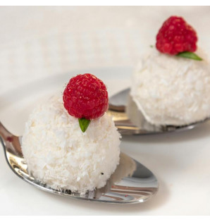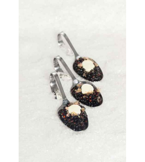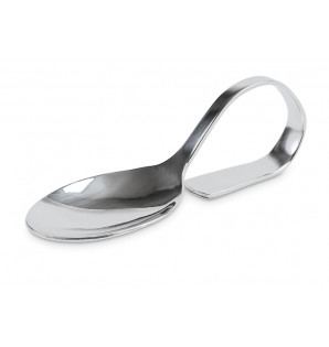 Stainless steel aperitif spoon with curved handle, for elegant presentation of appetizers. Washable and reusable.