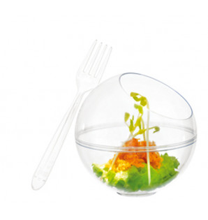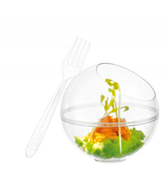 Small 14 cm STARCK® fork in transparent PS. Its size is perfect for take-away snacking, French fry trays, Buddha bowls, fruit salad...