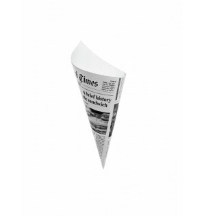Newspaper printing cone made of resistant and waterproof cardboard (anti-grease, but not compatible with liquids), ideal for taking away chips, churros, sweets or any other dry products.