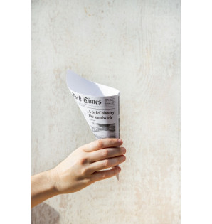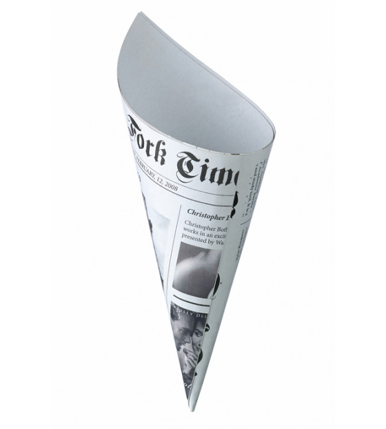 Newspaper printing cone made of resistant and waterproof cardboard (anti-grease, but not compatible with liquids), ideal for taking away chips, churros, sweets or any other dry products.