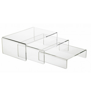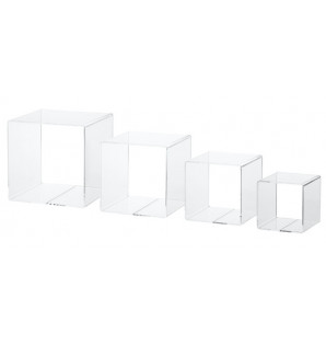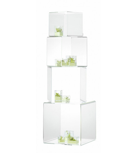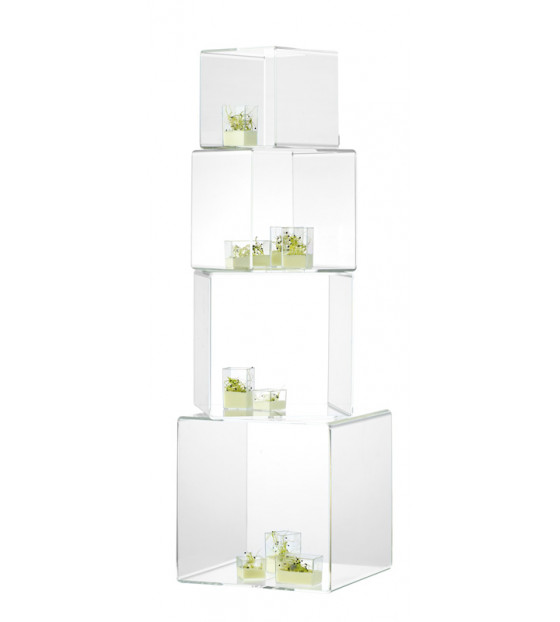 Set of 4 nesting cubes, to be arranged horizontally or stacked vertically, for a total height of 80 cm. Made from PMMA, it can be reused and recycled.