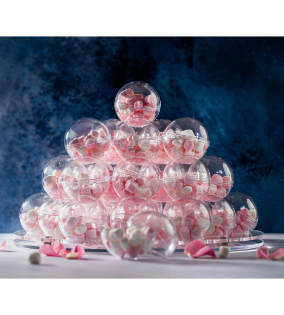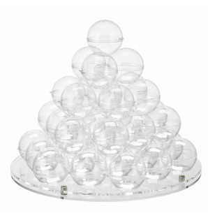 Transparent disc with 19 cavities, fixed on a base, for pyramid-shaped presentation of 42 Mini Perla 5 cl BPC5.