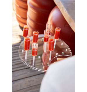 Round tray with 19 perforations mounted on a transparent base, for displaying 19 Delisticks DST20.