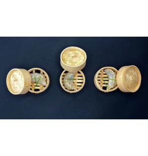 Mini bamboo steamer basket for serving individual portions. Heat-resistant to 120°C. The lid is sold separately PVC7