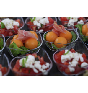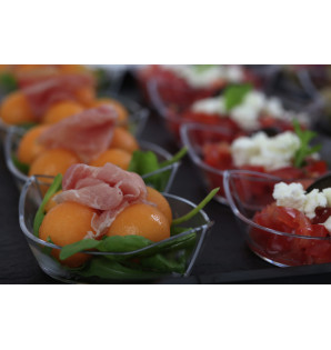 Mini ramekin with ears, transparent and tapered. Ideal for placing a mini appetizers or a portion of individual pastries.