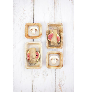 Rectangular ramekin made from palm leaf sheath. This 100% natural material, with no treatment or additives, is waterproof and heat-resistant: oven and microwave safe. Ideal for adding a natural, exotic touch to your buffets, we offer a range of palm leaves: