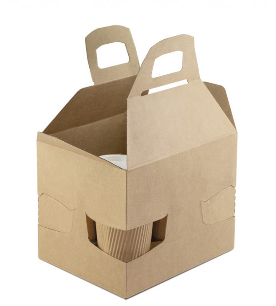 Modular cardboard box to suit all your needs. A top opening makes it easy to fill and its two handles keep it closed during transport. 4 cut-outs can be used to quickly attach a variety of objects: a small water bottle, a can, cups, a sandwich, etc.