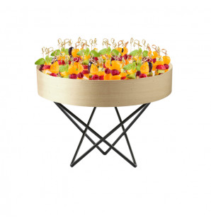Black metal stand with a sleek, neat design and non-slip coating. For displaying trays or boards 200 mm high. It can be combined with the 105 mm high Obvie stand SMN105. Handcrafted in France.