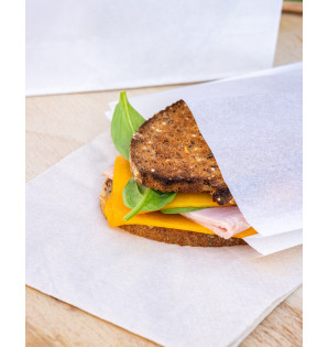 Square sandwich bag made from greaseproof paper. FSC® certified, it's an eco-friendly way to present your products.