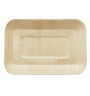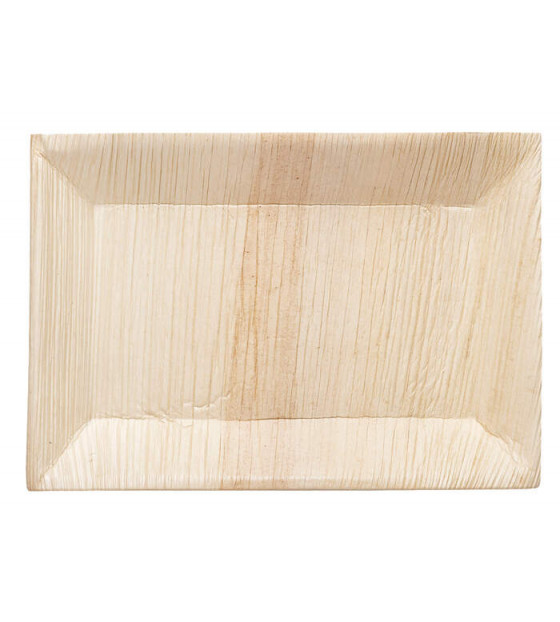 Rectangular natural plate, made from palm leaf sheath.
