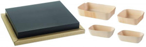 Our Madera trays, made from poplar wood and fitted with a PET film for a perfect seal, are ideal for authentic presentations. Their compatibility with traditional ovens (up to 200°C) and microwaves offers maximum versatility for your catering services.