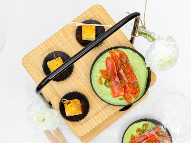 This thick (2 cm) solid bamboo square board offers exceptional quality and can be reused many times. Ideal for elegant buffet presentations, it allows for creative height arrangements when placed on wooden risers (RGA3) or on our non-slip metal stands (SMN405). For maintenance, it is recommended to clean it with a soft cloth.